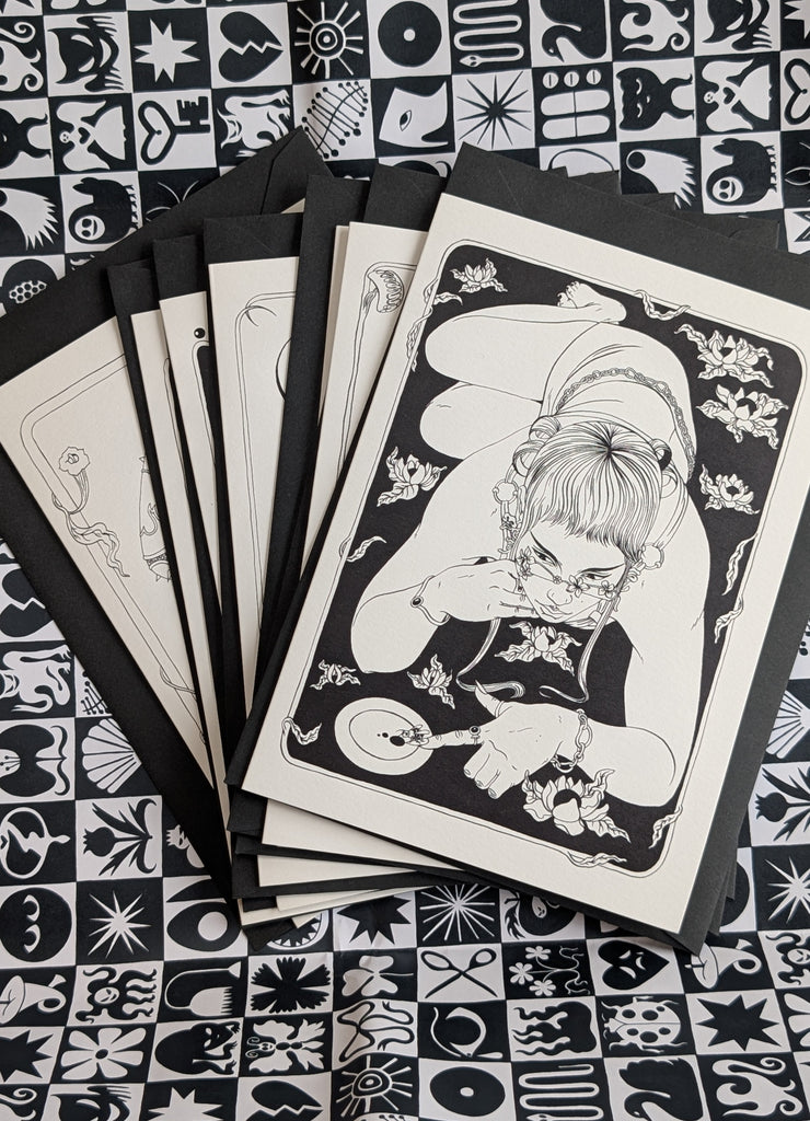 7 High Quality digitally printed greeting cards with blank interiors and matching black envelopes.Printed on 324gsm Mohawk Eggshell Superfine White Card.